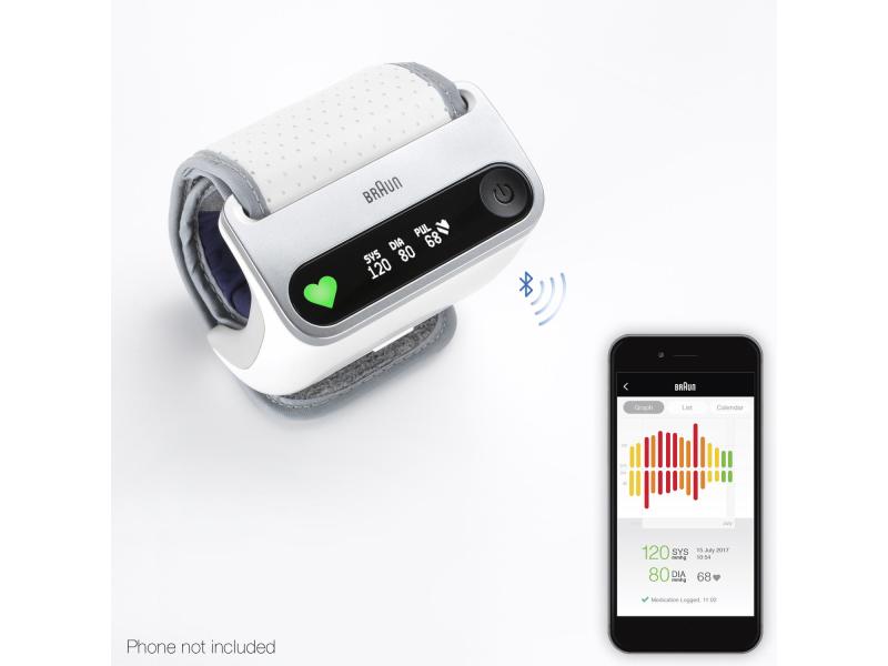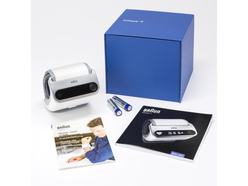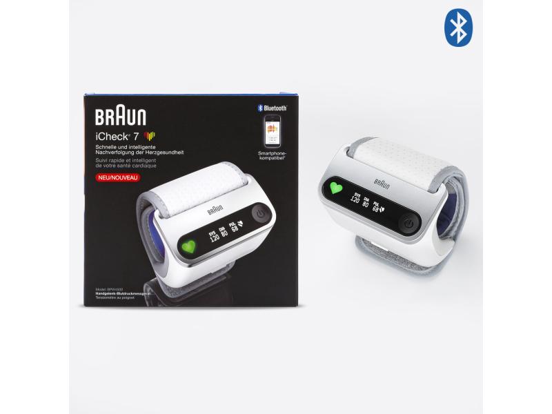 Le tensiomètre iCheck 7 de Braun permet de mesurer rapidement la pression artérielle au poignet. Grâce au système de joint à rotule, le tensiomètre peut être facilement positionné. Grâce aux résultats de mesure codés par couleur et à l'affichage pratique, vous avez toujours une vue claire de vos valeurs et pouvez les classer facilement. Le brassard est gonflé et dégonflé automatiquement. L'appareil est alimenté par deux piles AAA. Vous pouvez transférer les valeurs mesurées via Bluetooth à l'application "Braun Healthy Heart" sur les appareils iPad, iPhone et Android.