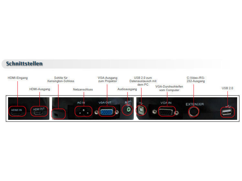 Interfaces: HDMI/VGA/Composite/RS-232/USB type B/USB/jack 3.5 mm