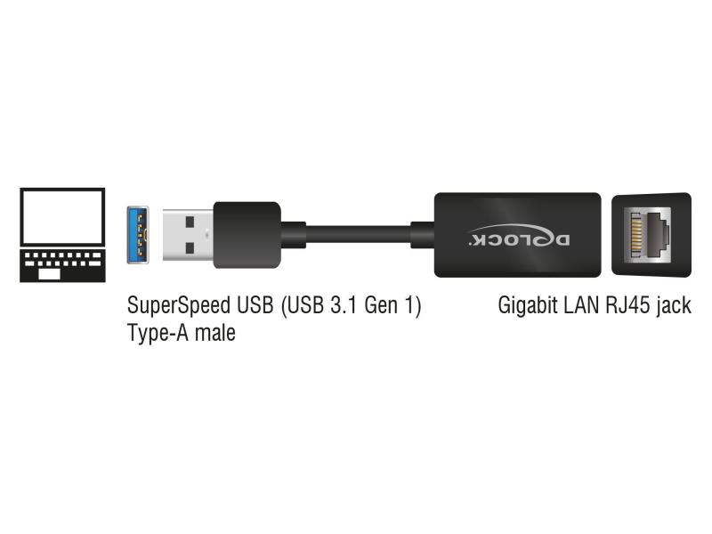 Delock Adaptateur réseau USB-A - RJ45 1Gbps, Noir