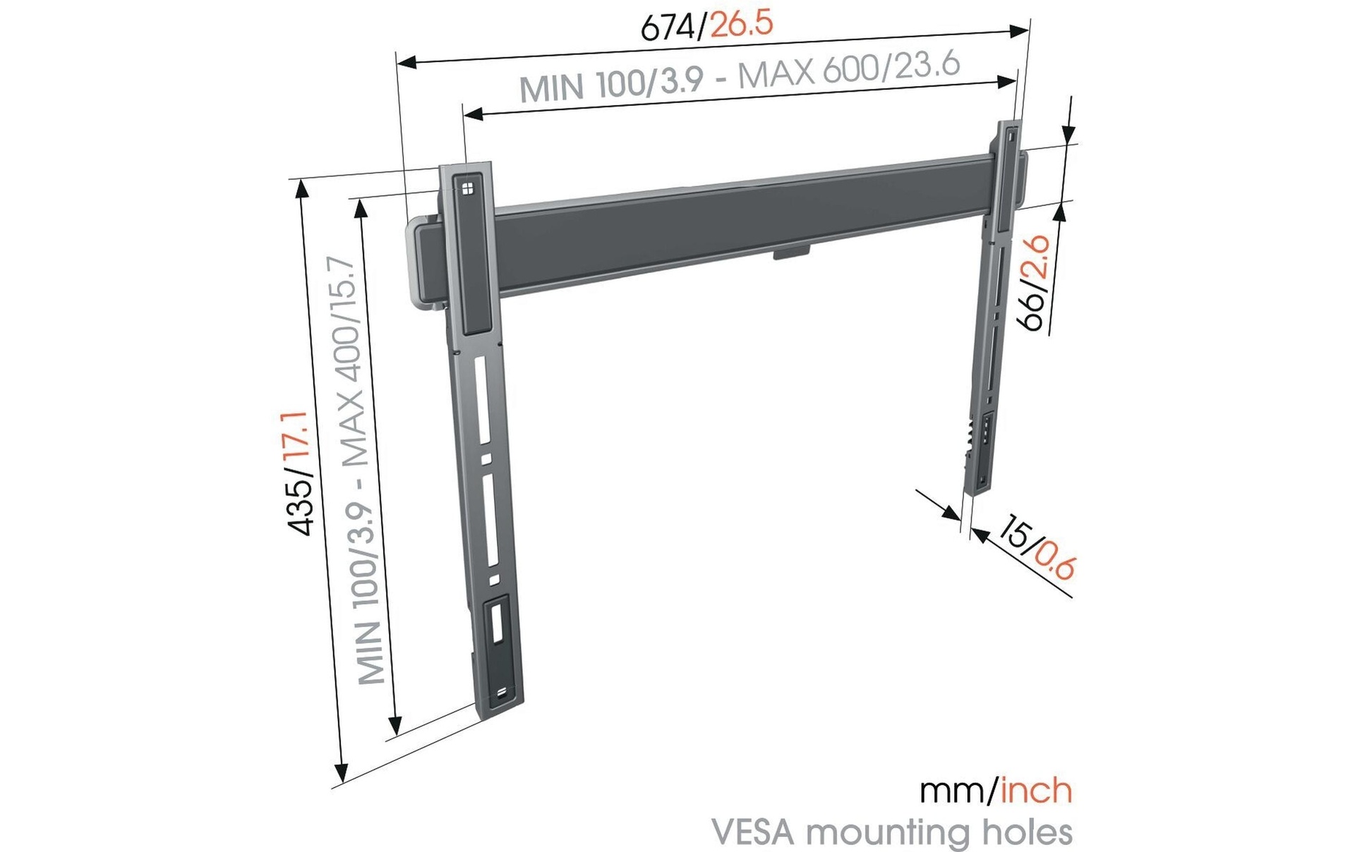 Flexibilité: Fixe - Norme VESA: 600x400 mm, 100x100 mm, 600x200 mm, 300x200 mm, 200x300 mm, 200x200 mm, 300x300 mm, 500x400 mm, 500x300 mm, 500x200 mm, 100x200 mm, 600x300 mm, 200x100 mm, 400x400 mm - Couleur de détail: Noir - Charge maximale: 100 kg - Pour diagonale d'écran: 60", 65", 88", 49", 42", 84", 86", 100", 80", 47", 40", 90", 43", 82", 46", 44", 70", 50", 85", 75", 52", 55", 95", 77", 98", 58", 48", 45", 41"