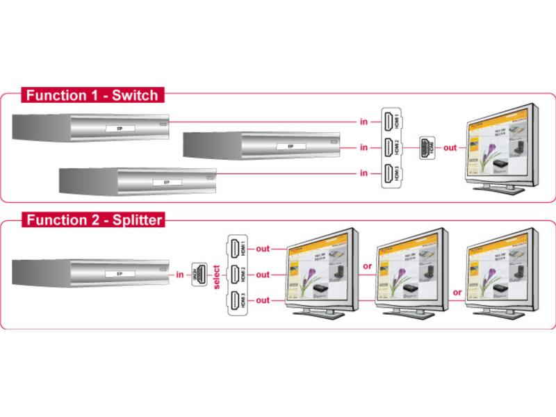 Nombre d'entrées: 3 × - Nombre de sorties: 1 × - Prise côté A: HDMI - Prise côté B: HDMI