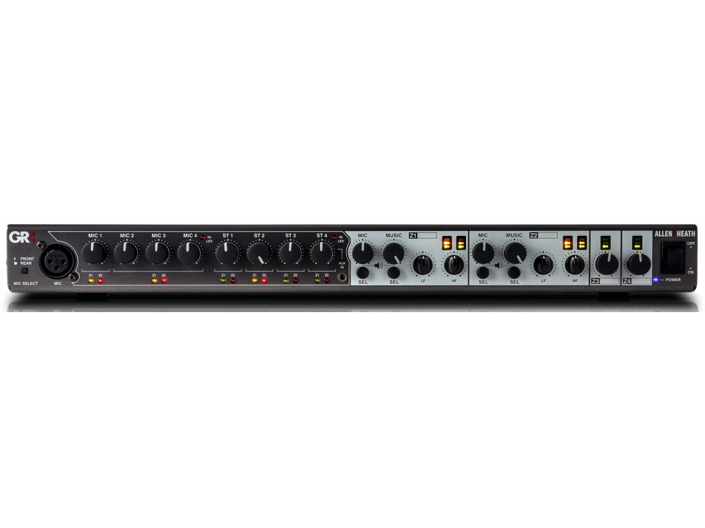 Le GR4 est un mélangeur audio de bureau ou en rack 1U, offrant un contrôle simple mais complet de la musique de fond et de la radiomessagerie dans les bars, restaurants, magasins et autres environnements de loisirs et de vente au détail. Parmi les caractéristiques les plus remarquables, mentionnons les plaques murales à distance en option, une entrée micro sur le panneau avant et une prise jack de 3,5 mm à l'avant pour les sources de musique portatives.
