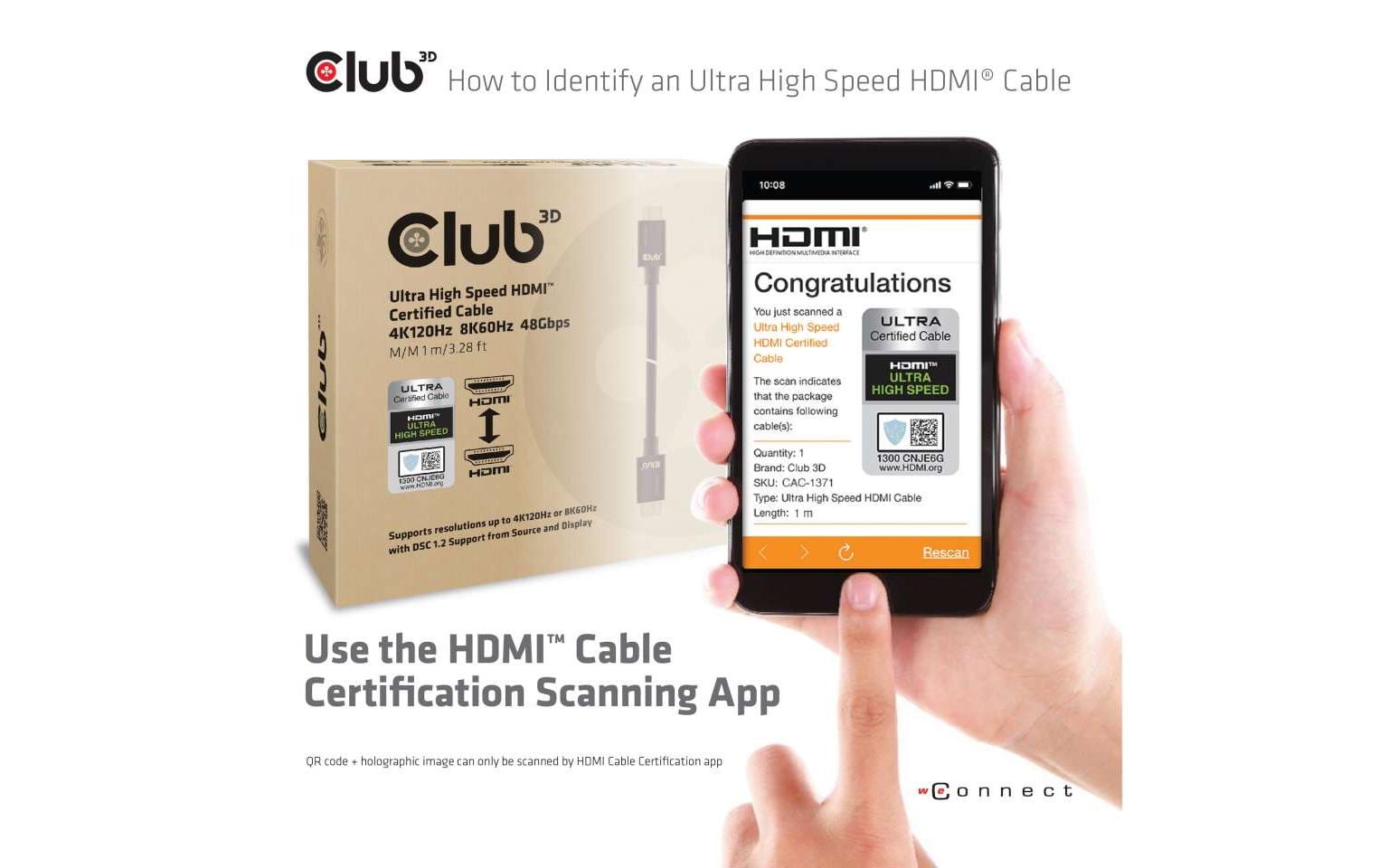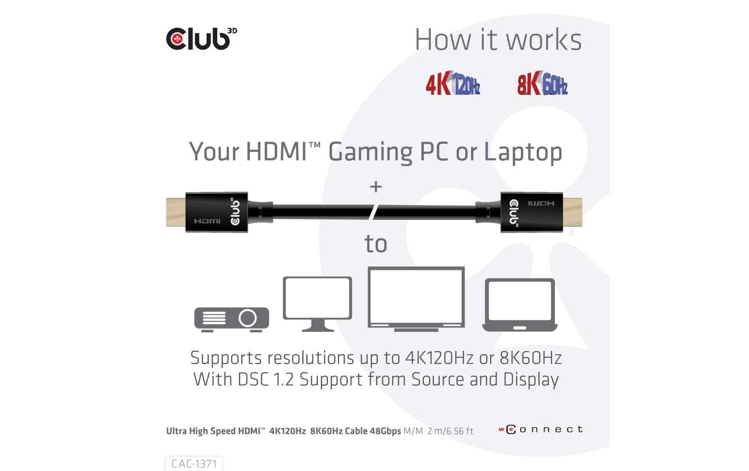 Club 3D Câble Ultra High Speed 4K120Hz, 8K60Hz HDMI 2.1 - HDMI,