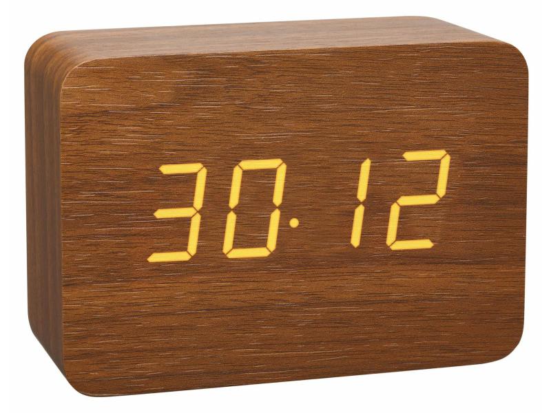 Type d'écran: Numérique - Signal radio: Oui - Fonctions: Alarme - Équipement: Durée, Température intérieure, Date - Couleur de détail: Brun - Source d'énergie: Piles, Alimentation sur secteur