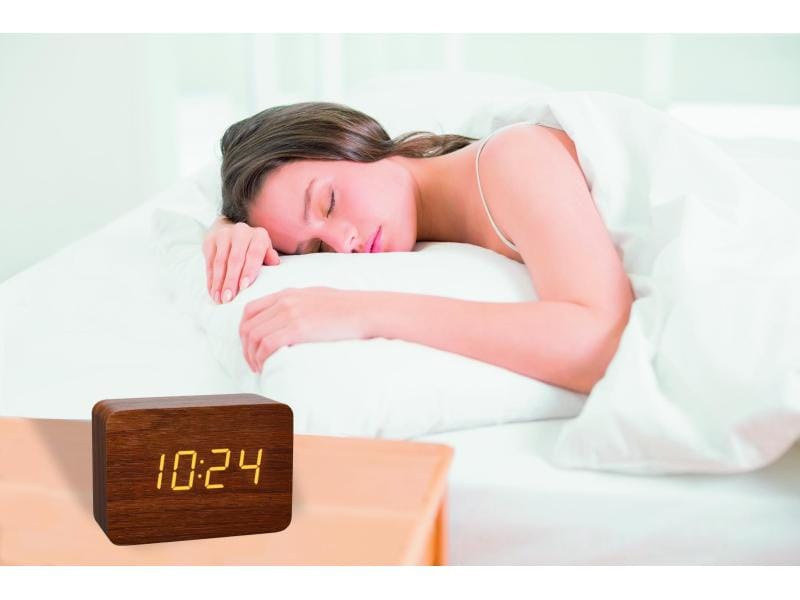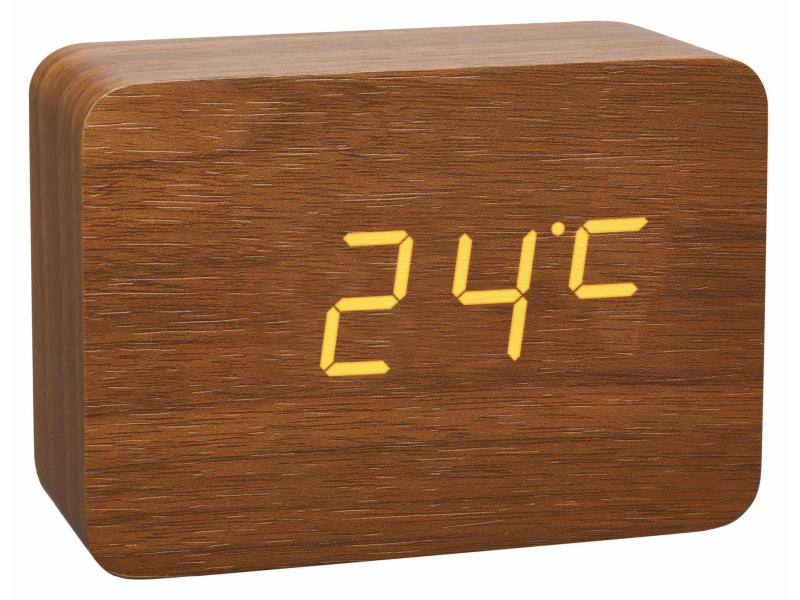Type d'écran: Numérique - Signal radio: Oui - Fonctions: Alarme - Équipement: Durée, Température intérieure, Date - Couleur de détail: Brun - Source d'énergie: Piles, Alimentation sur secteur