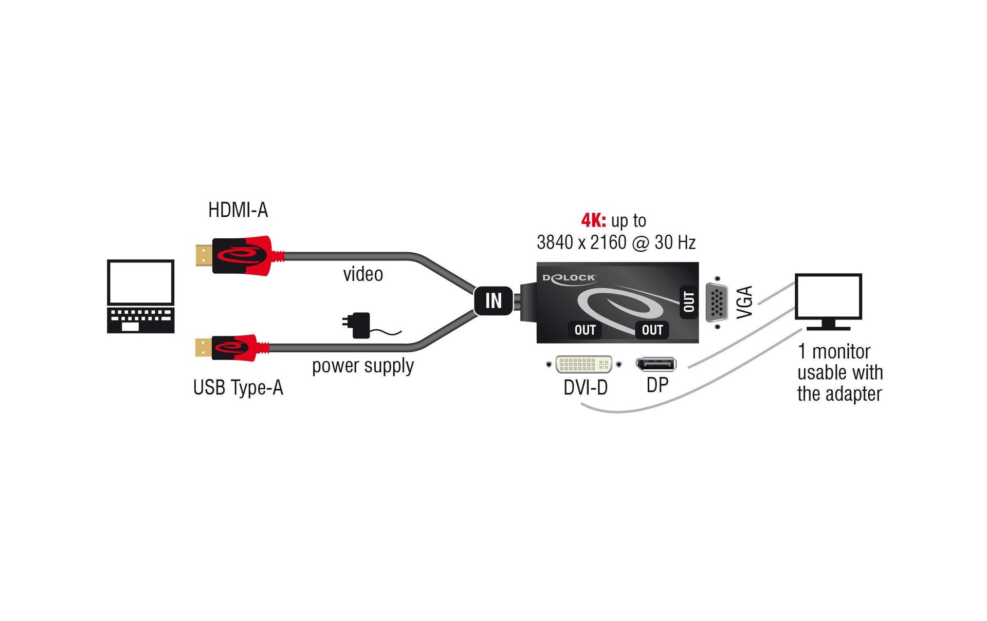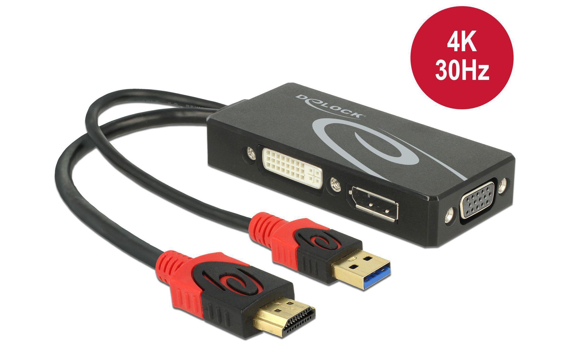 Delock Adaptateur 4K, 30HZ HDMI/USB 2.0 - DVI-D/VGA/DisplayPort