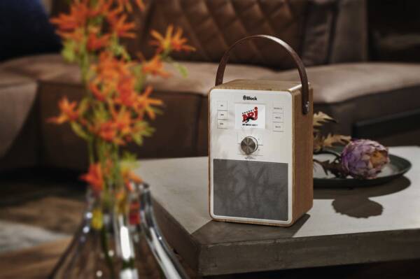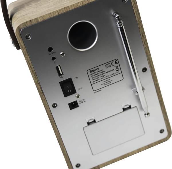 radio design, réception récepteur DAB, DAB+, FM, restitution radio Internet, restitution MP3, horloge, fonction réveil, télécommande, entrée audio (3,5mm), à l'arriére, Bluetooth, prise casque d'écoute, raccord USB, interface WLAN, fonctionne sur accu