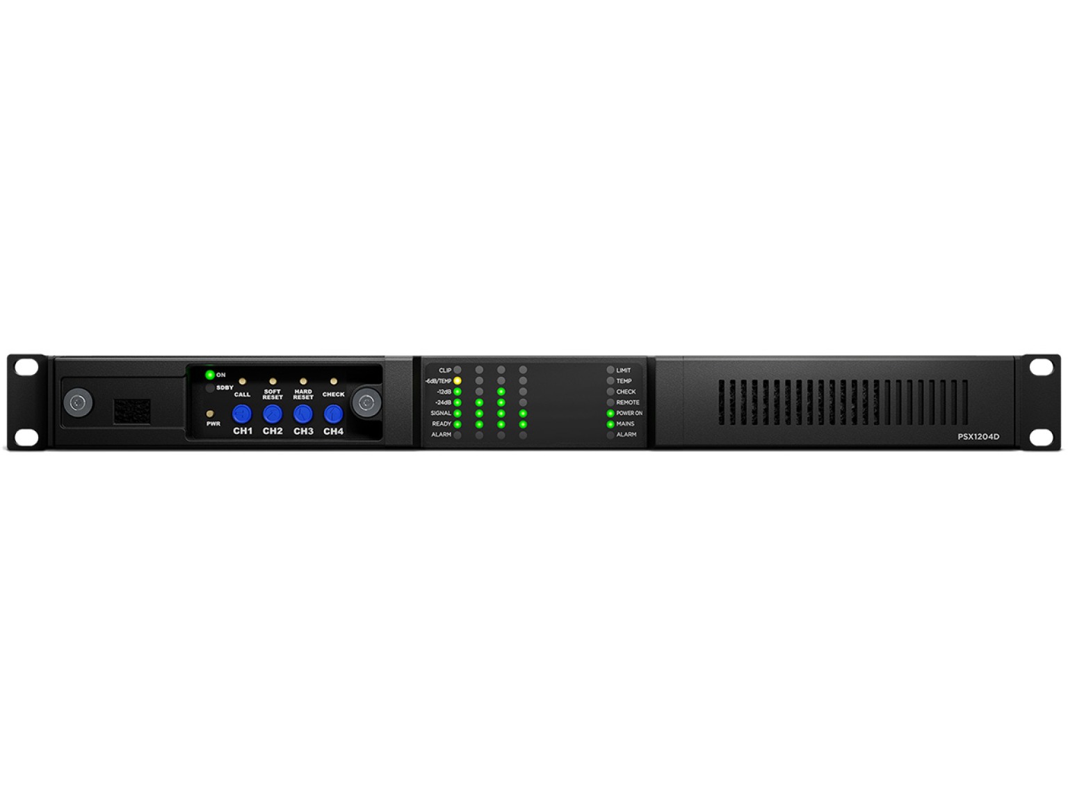 DSP, DANTE, AES67, 4x 400W@2Ohm, 4x 300W@4Ohm/8Ohm/@100V, 19"-1U