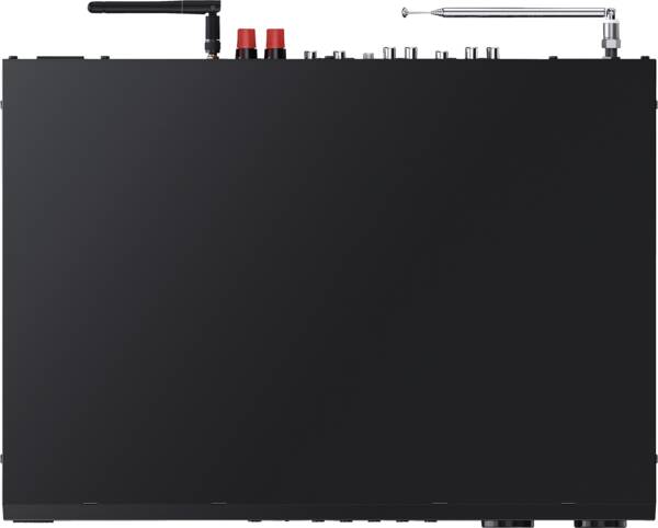 Ampli-Tuner-CD, puissance totale 60 Watts maxi, réception DAB, DAB+, restitution radio Internet, accès Internet aux services Online, partie radio RDS, réception FM, env. 8,12 cm écran, 3,2 Pouces, connexion Bluetooth, entrée tourne disque, prise casque d'écoute, connexion USB, à l'avant, Wireless LAN