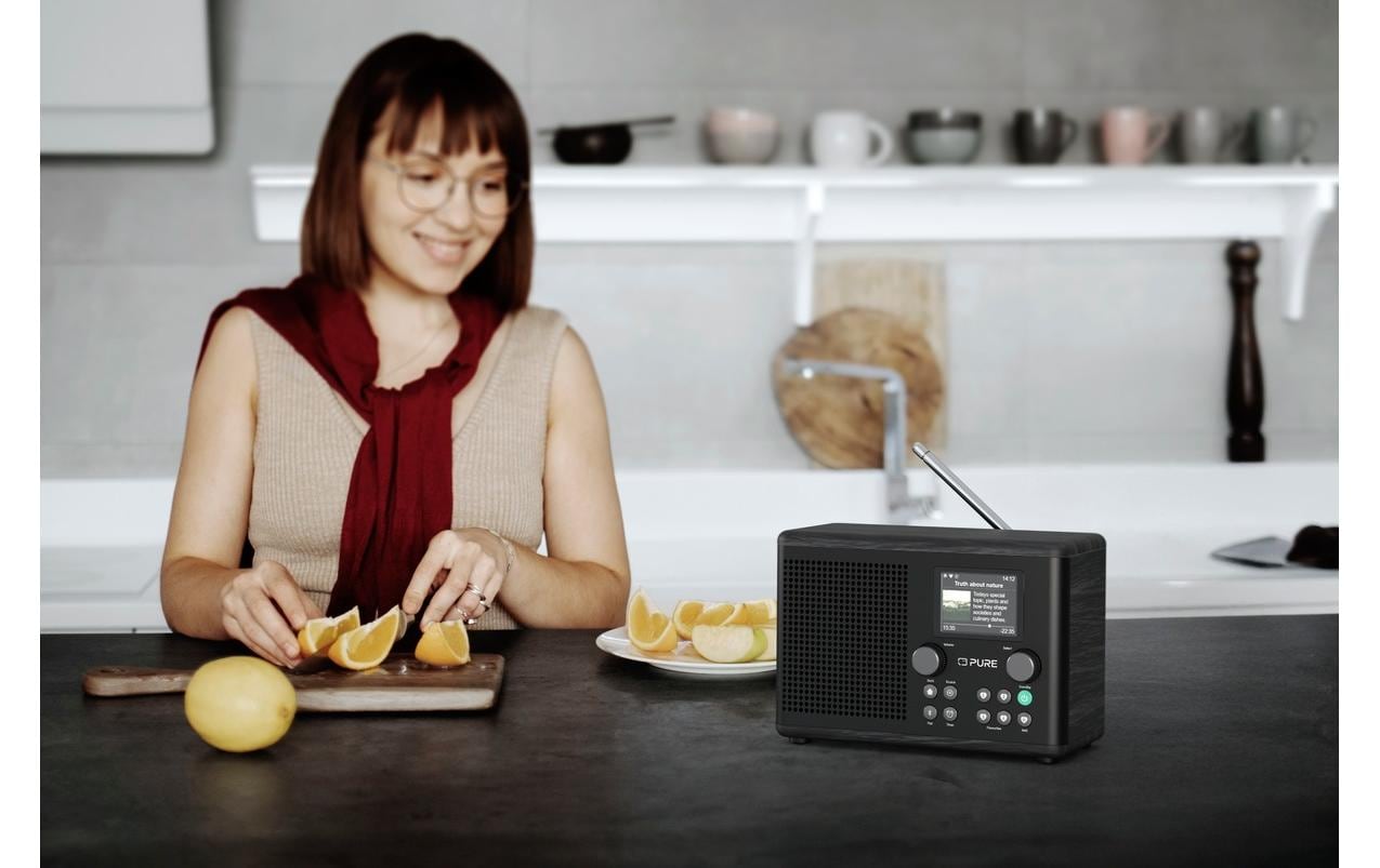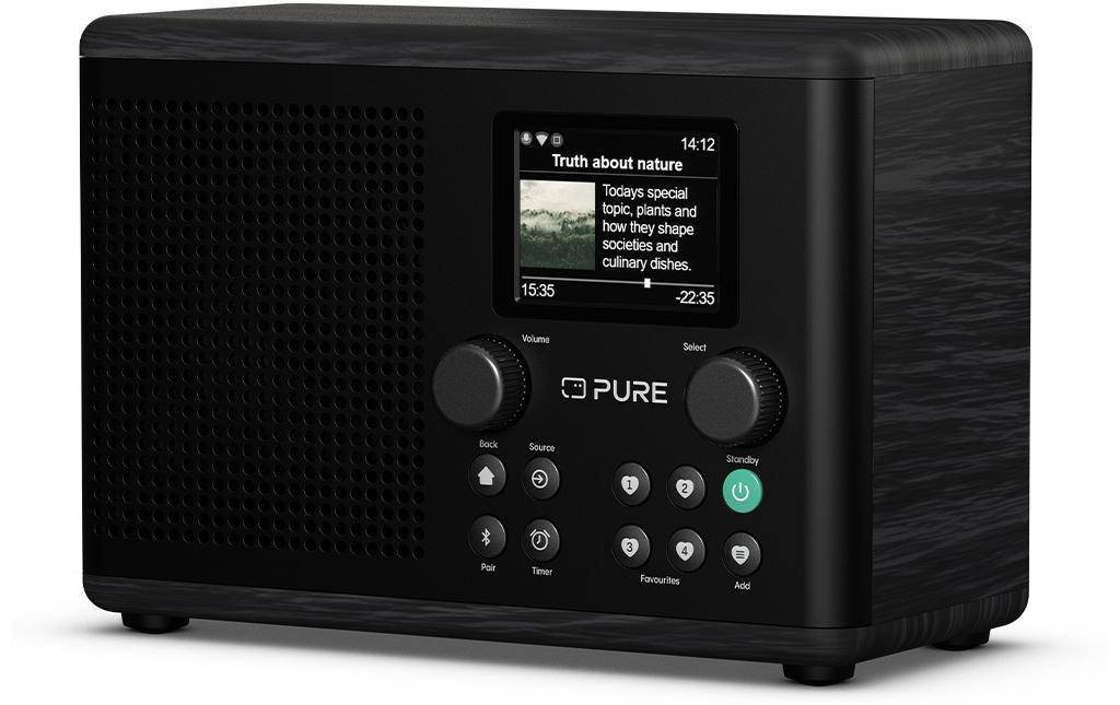 Conçu au Royaume-Uni, le Classic H4i s'adapte à tous les intérieurs modernes et est disponible dans une élégante teinte noir-frêne. Avec une largeur compacte de 20 cm (à peu près la taille d'une couverture de livre de cuisine), il s'intègre sans effort dans n'importe quelle pièce. L'écran couleur TFT intuitif de 2.4 pouces facilite la navigation, l'ajustement des paramètres et la recherche des chaînes.